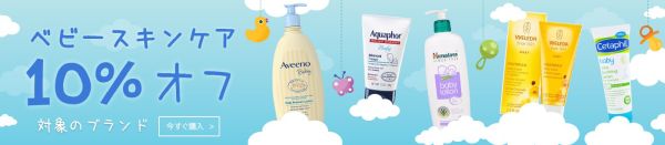 次のセールはベビースキンケアの特定の商品が10%オフ(⇒15%オフ)になるセールです。