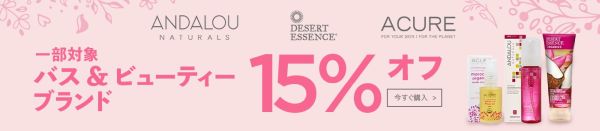 Desert Essence、Acure OrganicsとAndalou Naturalsという大人気の3つのブランドの商品がすべて15%(⇒20%オフ)になります。