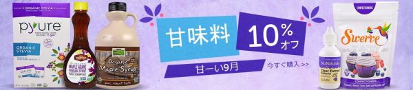今週の最後のセールは砂糖の代わりに使えるカロリーオフの甘味料が10%オフ(⇒15%オフ)になるセールです。
