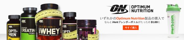 Optimum Nutritionの商品購入でブレンダーボトルが1ドルに