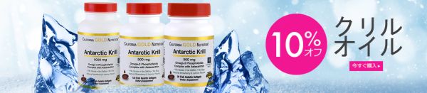 次のセールはCalifornia Gold Nutritionが売っているクリル・オイル(オキアミ・オイル)が10%オフになるセールです。