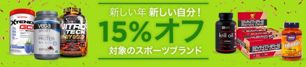 - Muscletech(15%オフ):プロテインや筋トレ用のサプリを売っているブランドです。今週の新しいスポーツブランドセールよりこちらの商品の方がおすすめです。